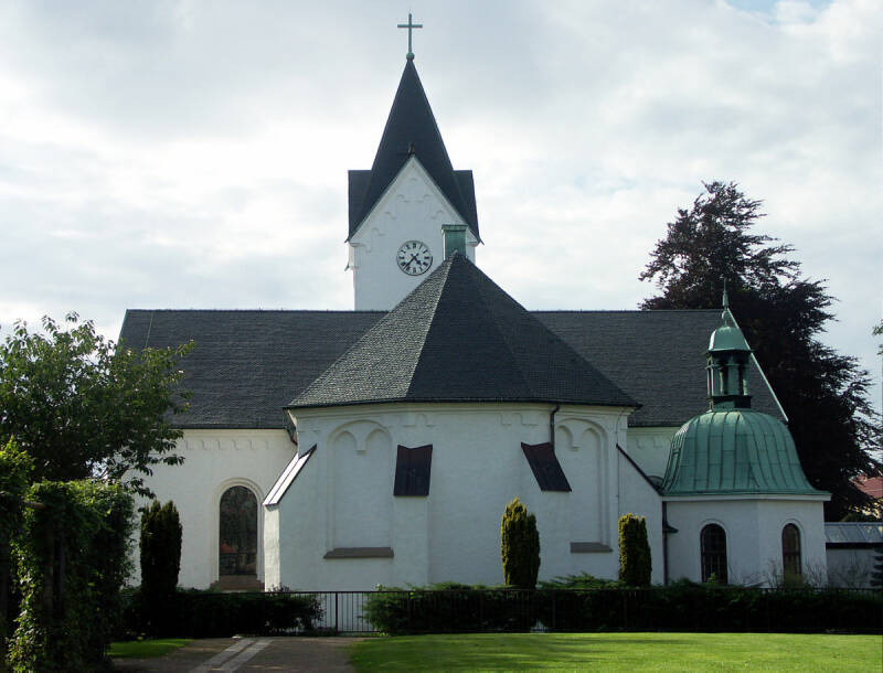 De van oorsprong laatromaanse kerk werd in het midden van de 15e eeuw aanzienlijk veranderd. De zuidmuur van het schip en het onderste deel van de toren zijn bewaard gebleven uit de eerste bouwperiode. Dit toont ronde boog en driehoekige friezen aan alle kanten onder de laatgotische delen. Aan de westzijde bevindt zich een groot gewelfd portaal met deels versieringen van geglazuurde bakstenen. Het interieur van de toren heeft een kruisgewelf en stond oorspronkelijk open voor het schip. De zuidmuur van het schip met een diamanten fries en Duits lint is in wezen bewaard gebleven , maar wordt gedeeltelijk bedekt door het dak van de kloostervleugel.