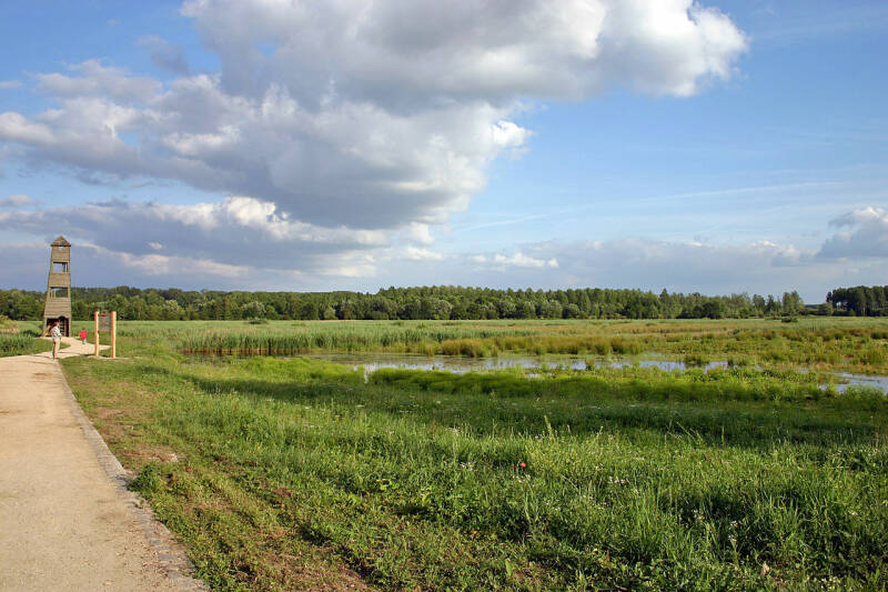 Het grootste deel van het terrein staat weer onder water, waarbij men over het water knuppelpaden heeft aangelegd.